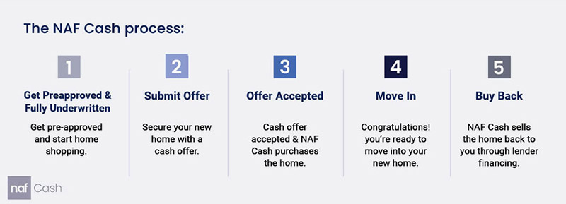 In simple terms, NAF Cash lets qualified sellers secure their next home with a cash offer, move in, and then sell their current home afterward—on their timeline.