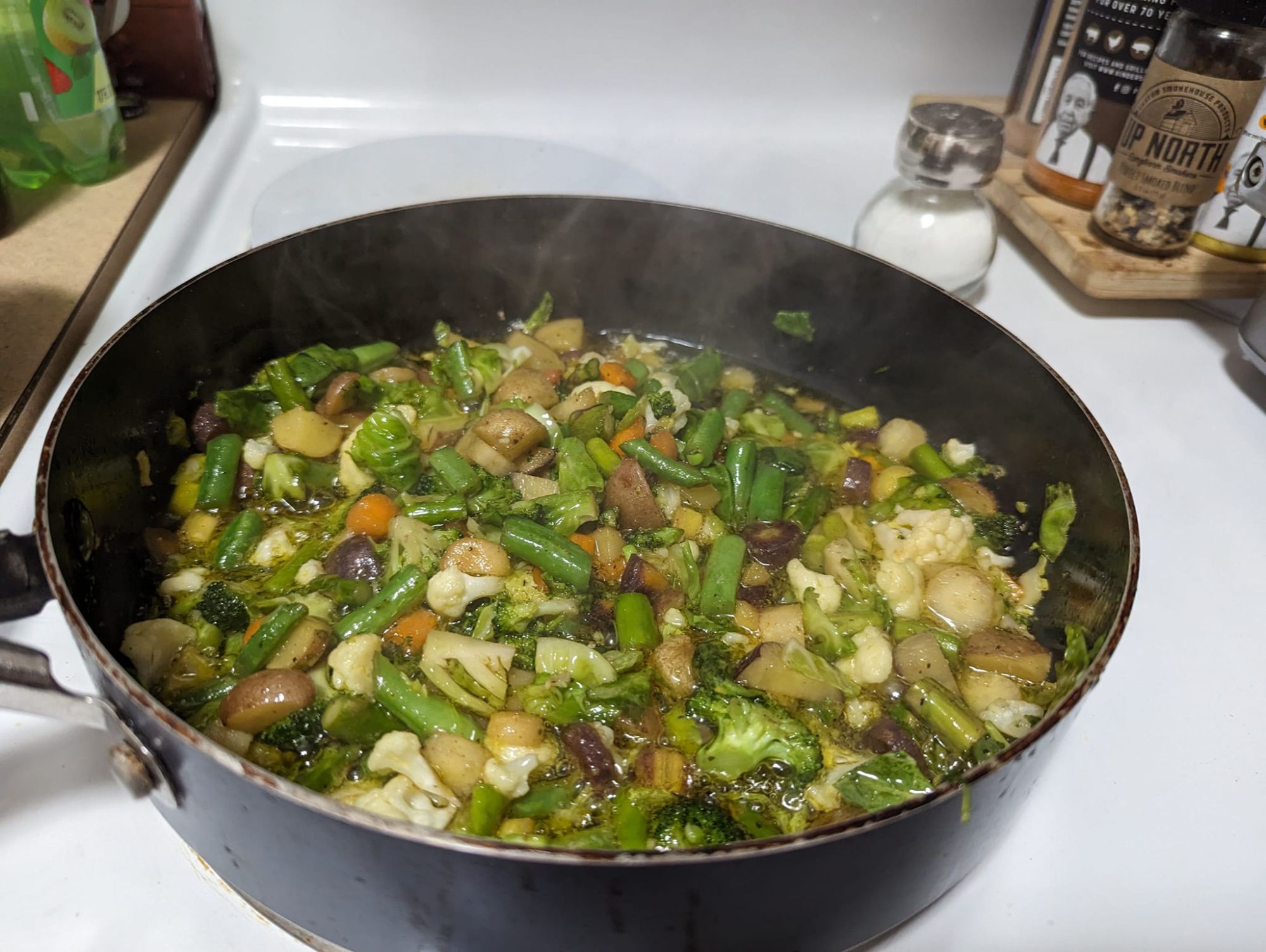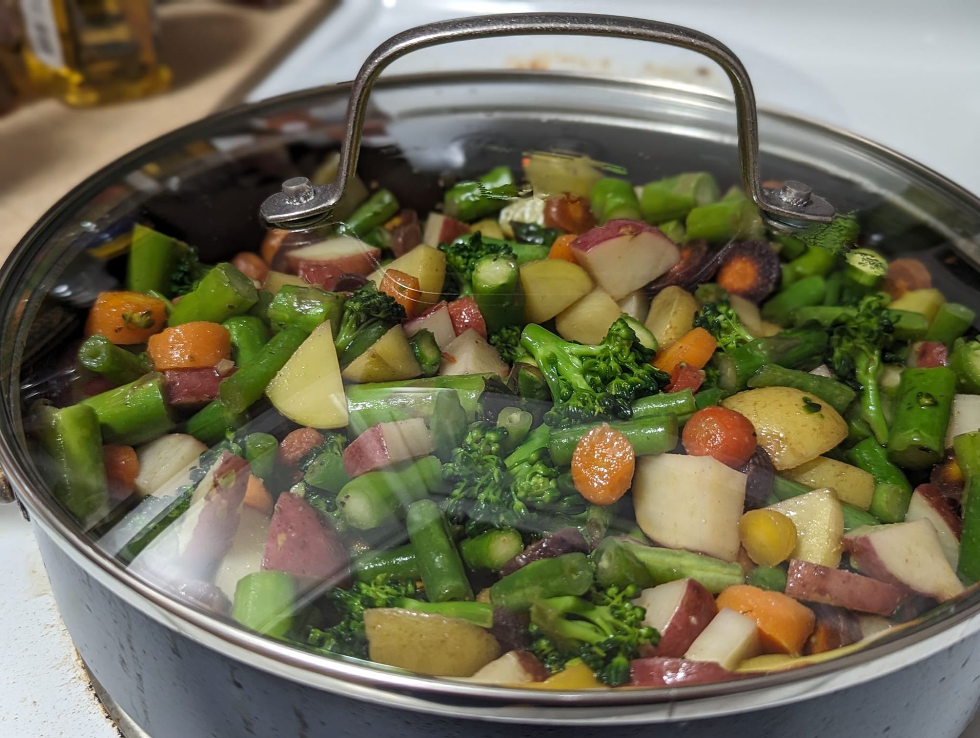 - If cooking a large amount of vegetables, use a cover to help steam and cook them evenly.